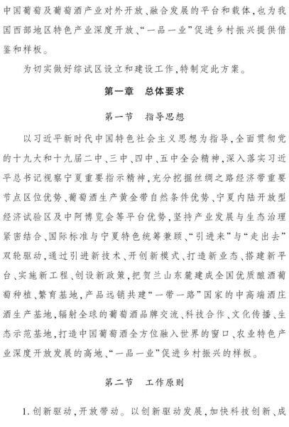 综试区立足宁夏贺兰山东麓全域,突出生态价值、重视酒旅文化、强化品牌贸易,探索三产融合新技术、新模式、新业态、新平台、新工程、新政策,努力打造引领宁夏乃至中国葡萄及葡萄酒产业对外开放、融合发展的平台和载体,也为我国西部地区特色产业深度开放、“一品一业”促进乡村振兴提供借鉴和样板。