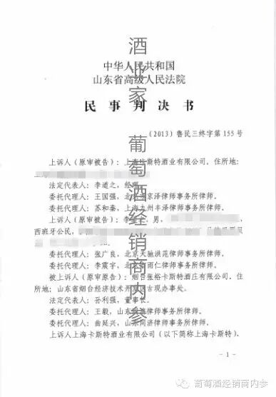 酒业家?葡萄酒经销商内参记者在判决书上了解到,本案为上诉人上海卡斯特酒业有限公司(以下简称上海卡斯特)、李道之因与被上诉人烟台张裕卡斯特酒庄有限公司(以下简称张裕卡斯特)确认不侵犯注册商标专用权纠纷一案,不服中华人民共和国山东省烟台市中级人民法院(2009)烟民三初字第149号民事判决,向山东省高级人民法院提起上诉。